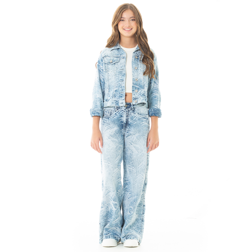 JEAN PARA NIÑAS BOTA RECTA CON DISEÑO EN JACQUAR