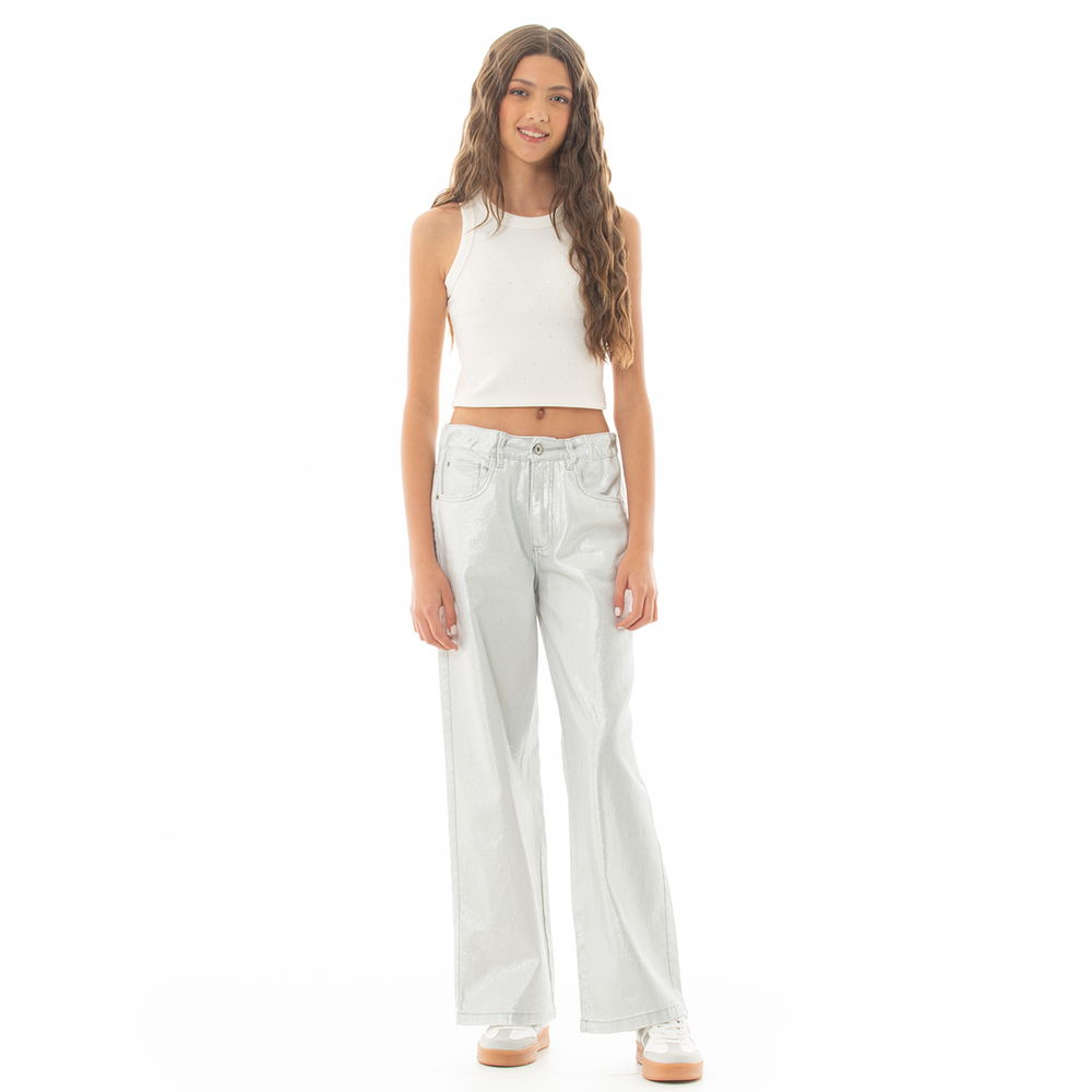 JEAN PARA NIÑAS BOTA RECTA EFECTO METALIZADO