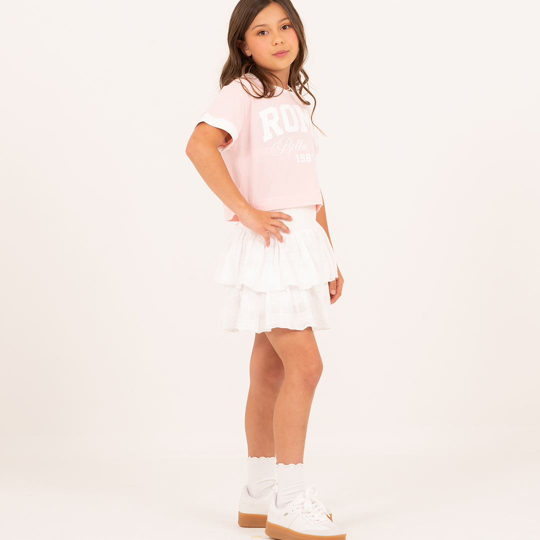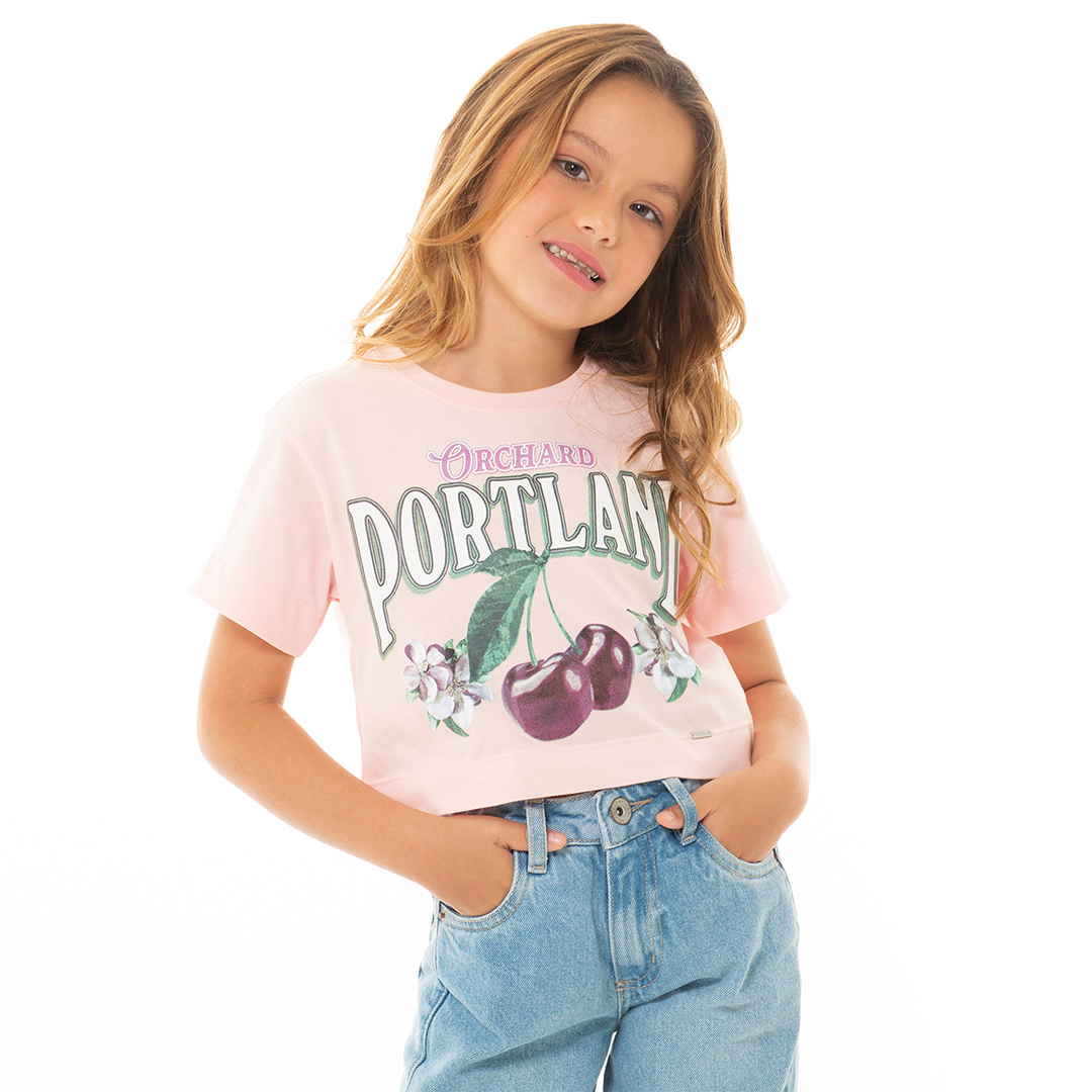 CAMISETA CROP PARA NIÑA CON DISEÑO ESTAMPADO BLANCA