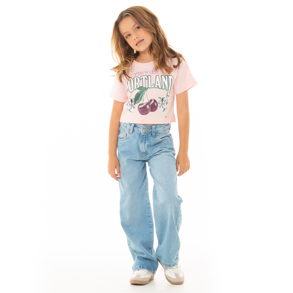 JEAN PARA NIÑAS BOTA RECTA CON ESTAMPADO DE LAZOS