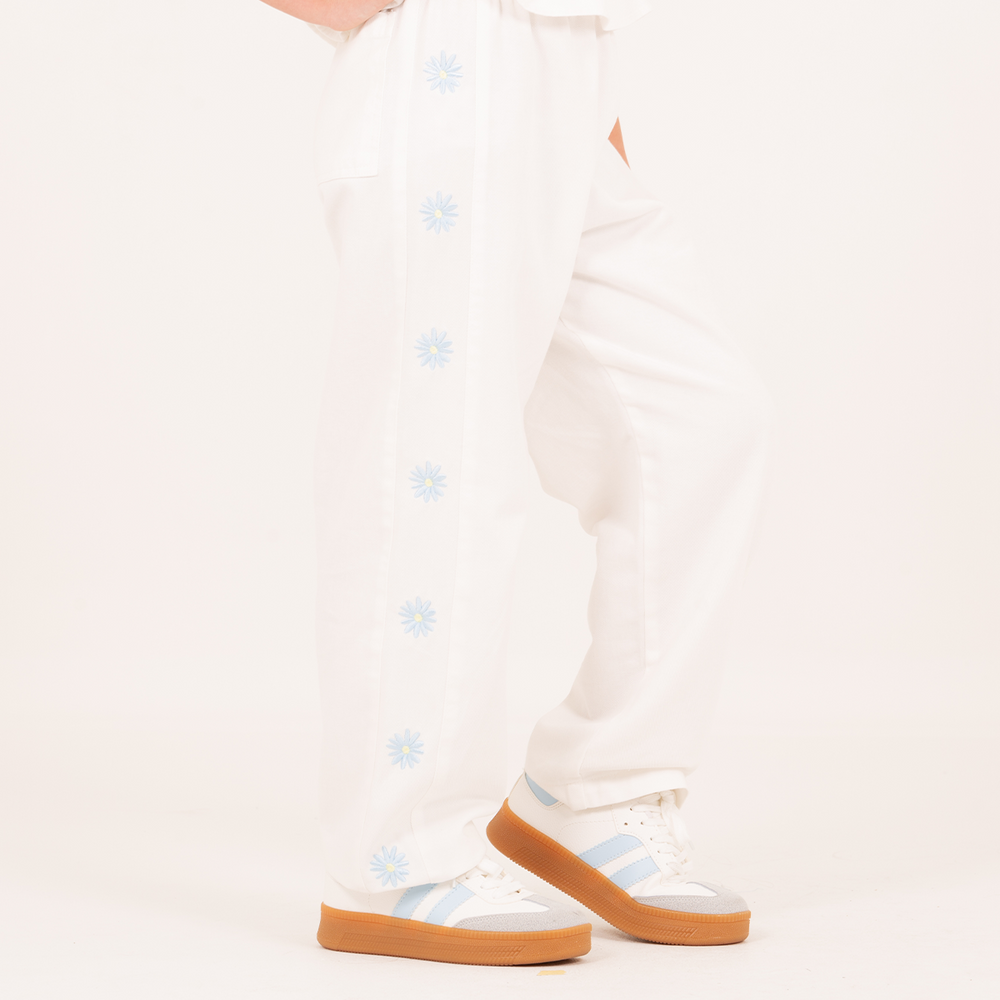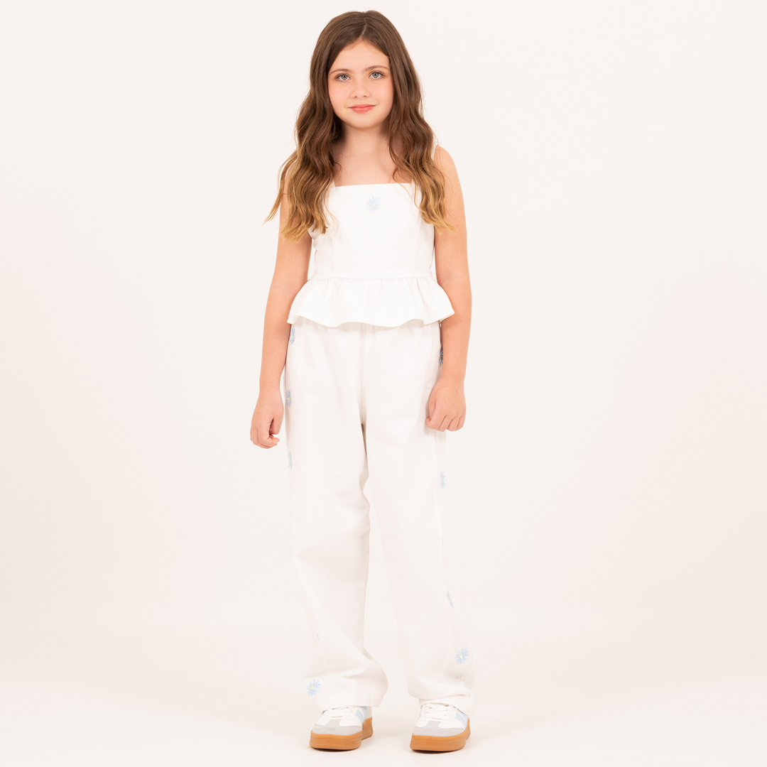 PANTALÓN RECTO BORDADO PARA NIÑAS – MARFIL