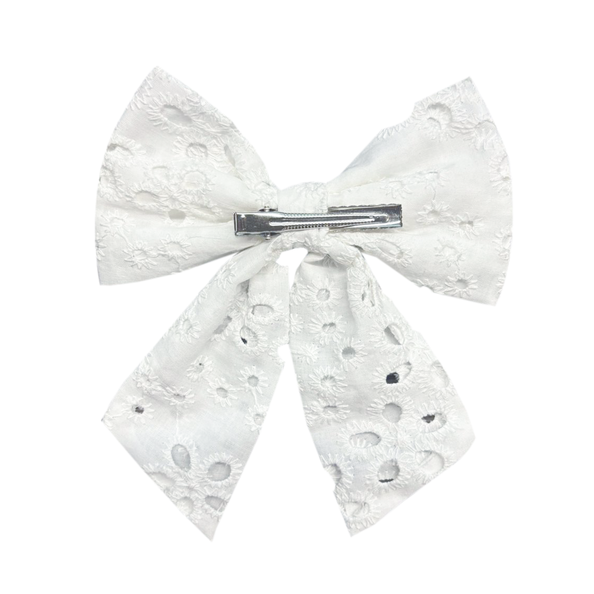 Moño magic bows en color blanco en ojalillo, es una forma estupenda de mostrar tu estilo. Su diseño añade un toque extra a tu vestuario. ¡El accesorio perfecto para cualquier niña!