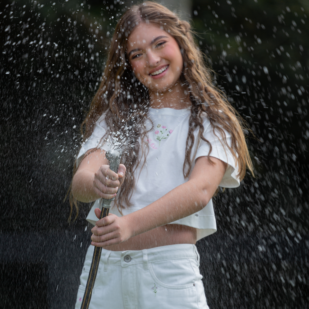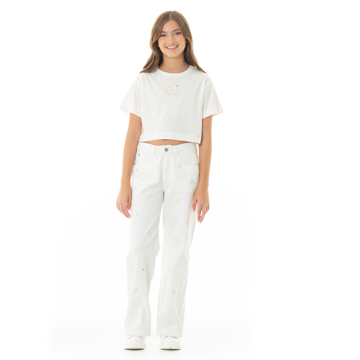Dulce, fresca y llena de encanto natural 🌸Esta camiseta blanca crop es perfecta para niñas que adoran un look delicado y moderno. Su diseño presenta un hermoso bordado de flores en tonos pastel acompañado de una mariposa rosada, junto a la frase “Be like a flower”, que aporta un toque tierno y lleno de personalidad. Confeccionada en algodón suave y ligero, ofrece total comodidad para el día a día ¡Lúcete con tus camisetas Nauty Blue!