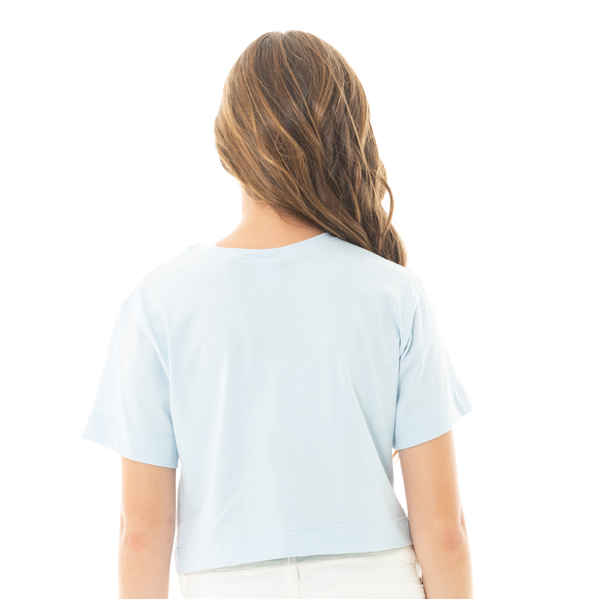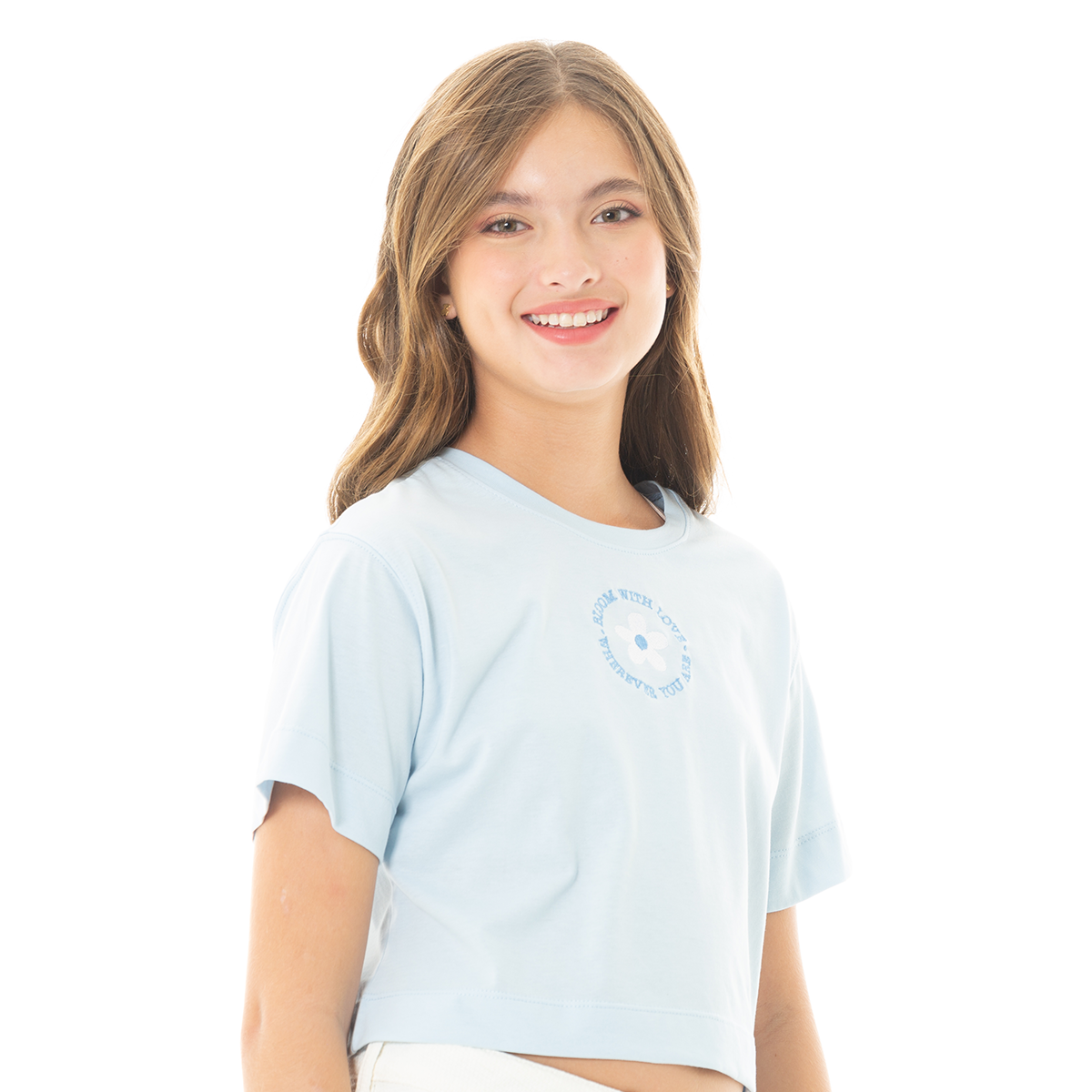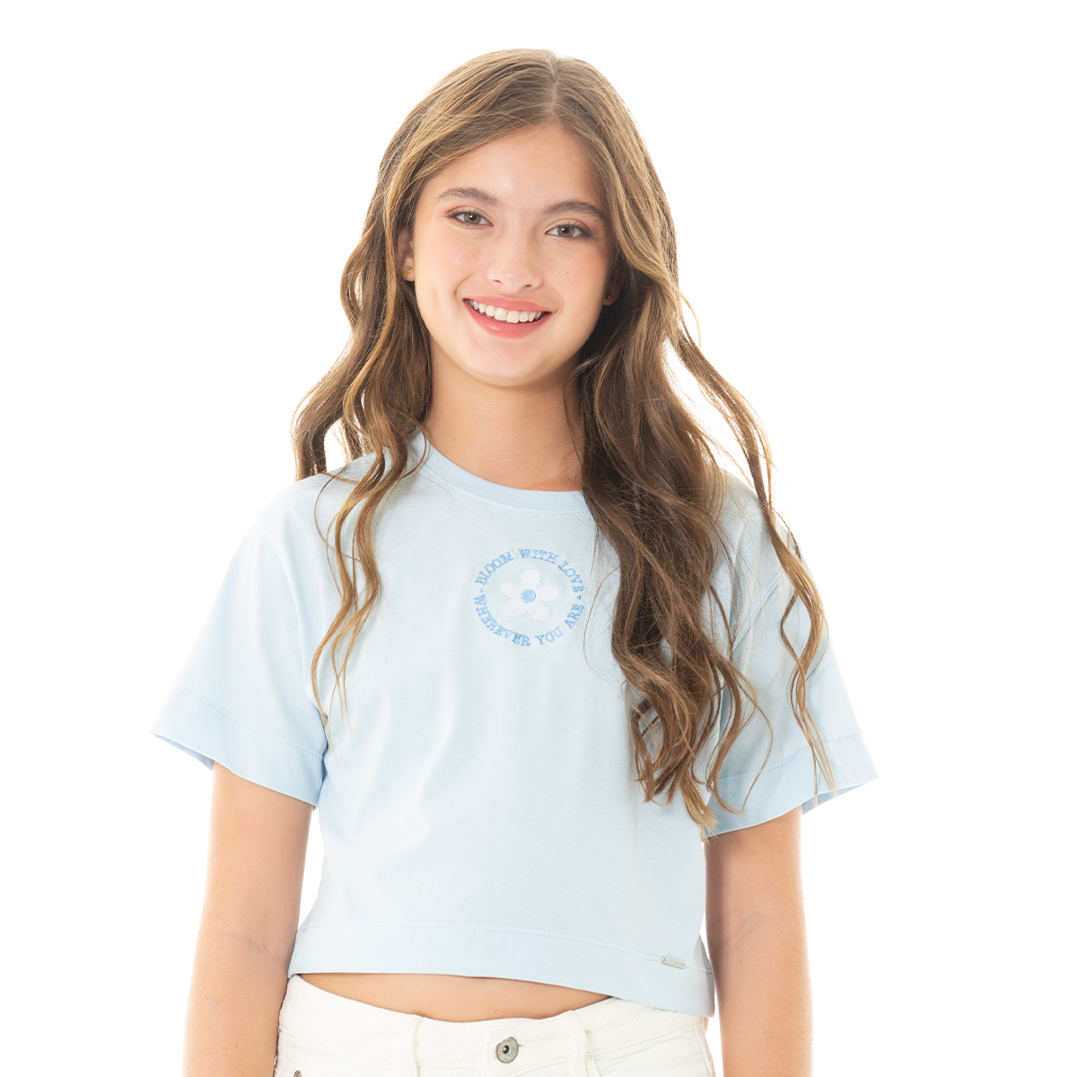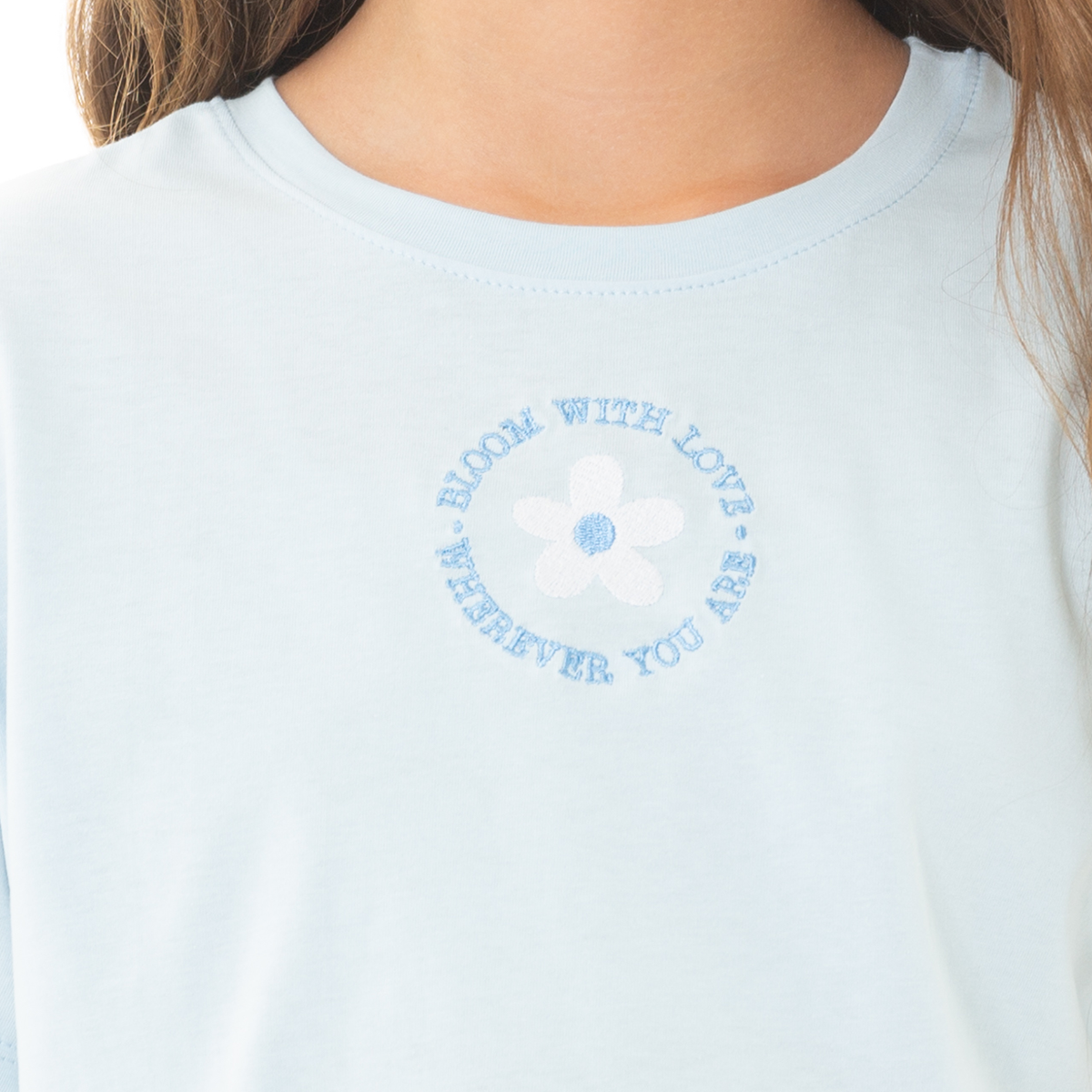 Esta camiseta en tono azul pastel combina un diseño delicado y femenino. Con un encantador bordado sutil de flor y letras en el pecho que le da un toque único y dulce.¡Lúcete con tus camisetas Nauty Blue favoritas!