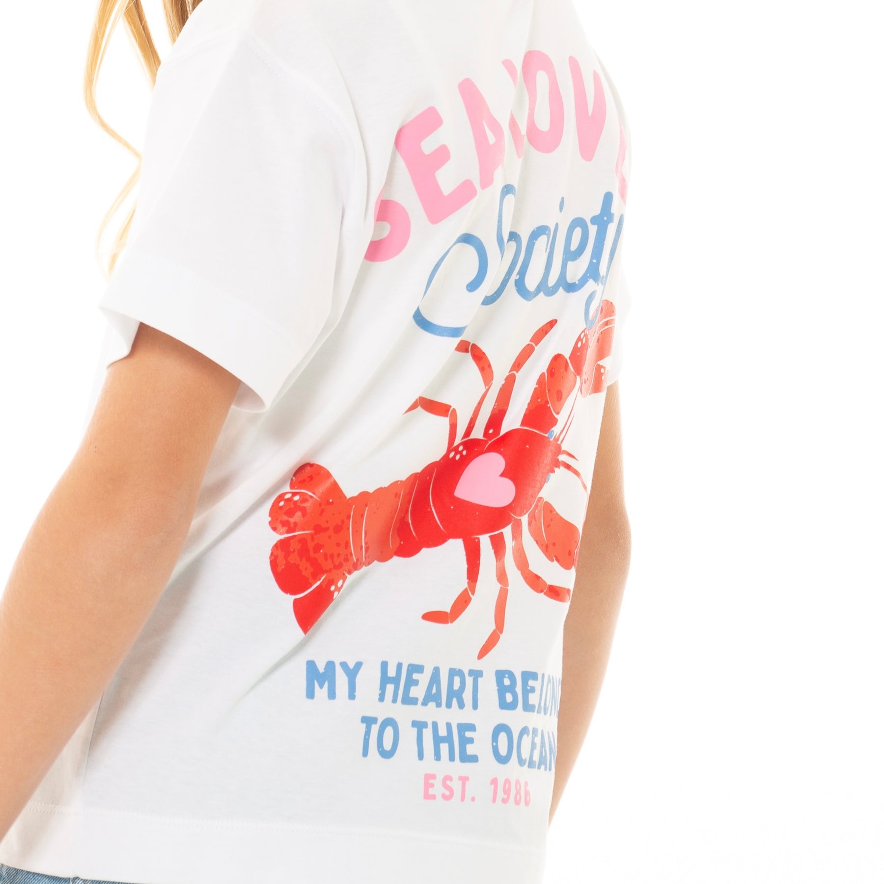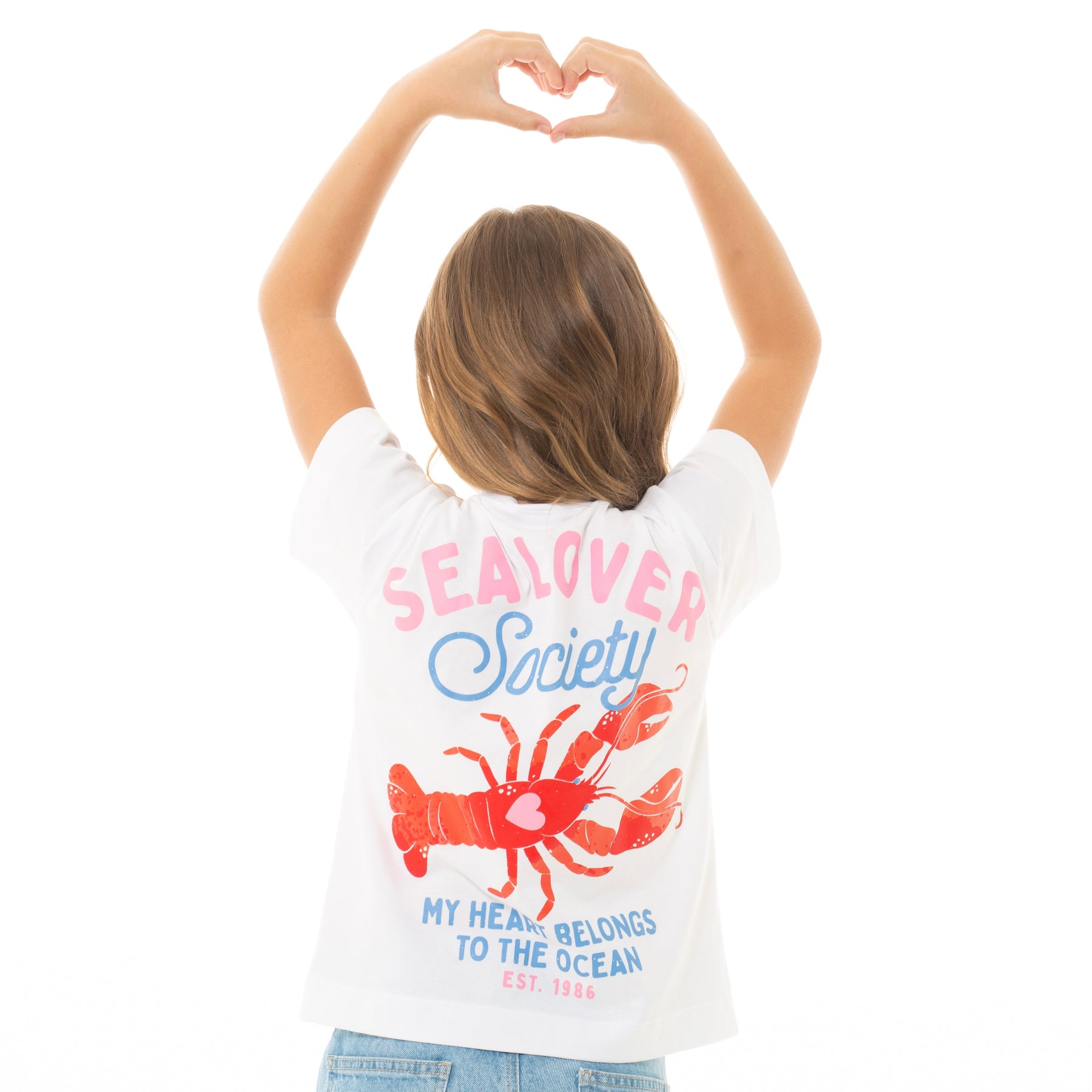 Esta camiseta es perfecta para quienes aman los diseños divertidos. En la parte frontal presenta un detalle de corazón rosa y la frase “SEA LOVER”, mientras que en la parte trasera sorprende con un estampado llamativo de una langosta roja acompañado del mensaje “Sea Lover Society” y “My heart belongs to the ocean”. !No te quedes sin tu camiseta Nauty Blue!