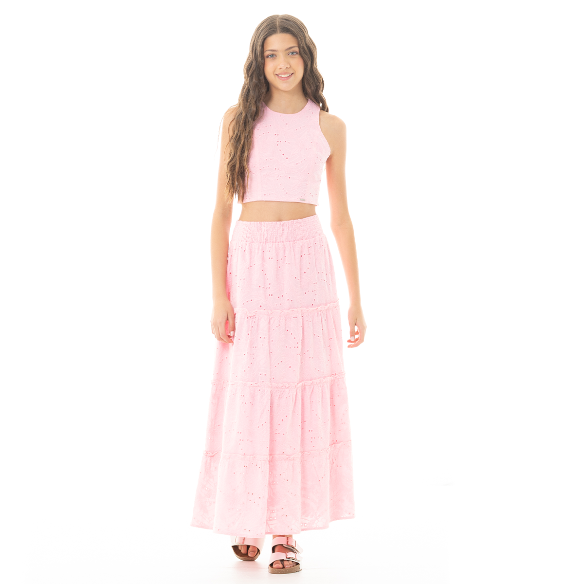 CROP TOP PARA NIÑAS ROSADO EN DISEÑO DE OJALILLO