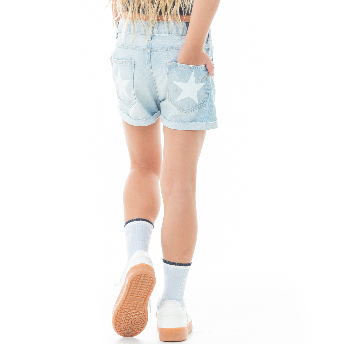 Este short combina la comodidad del denim con un diseño lleno de personalidad y dulzura. Su detalle especial de estrellas grabadas en sus bolsillos traseros se ven sutiles pero encantadores, ¡Un básico con un toque tierno que vas a amar. ¡Detalles que te hacen marcar la diferencia!