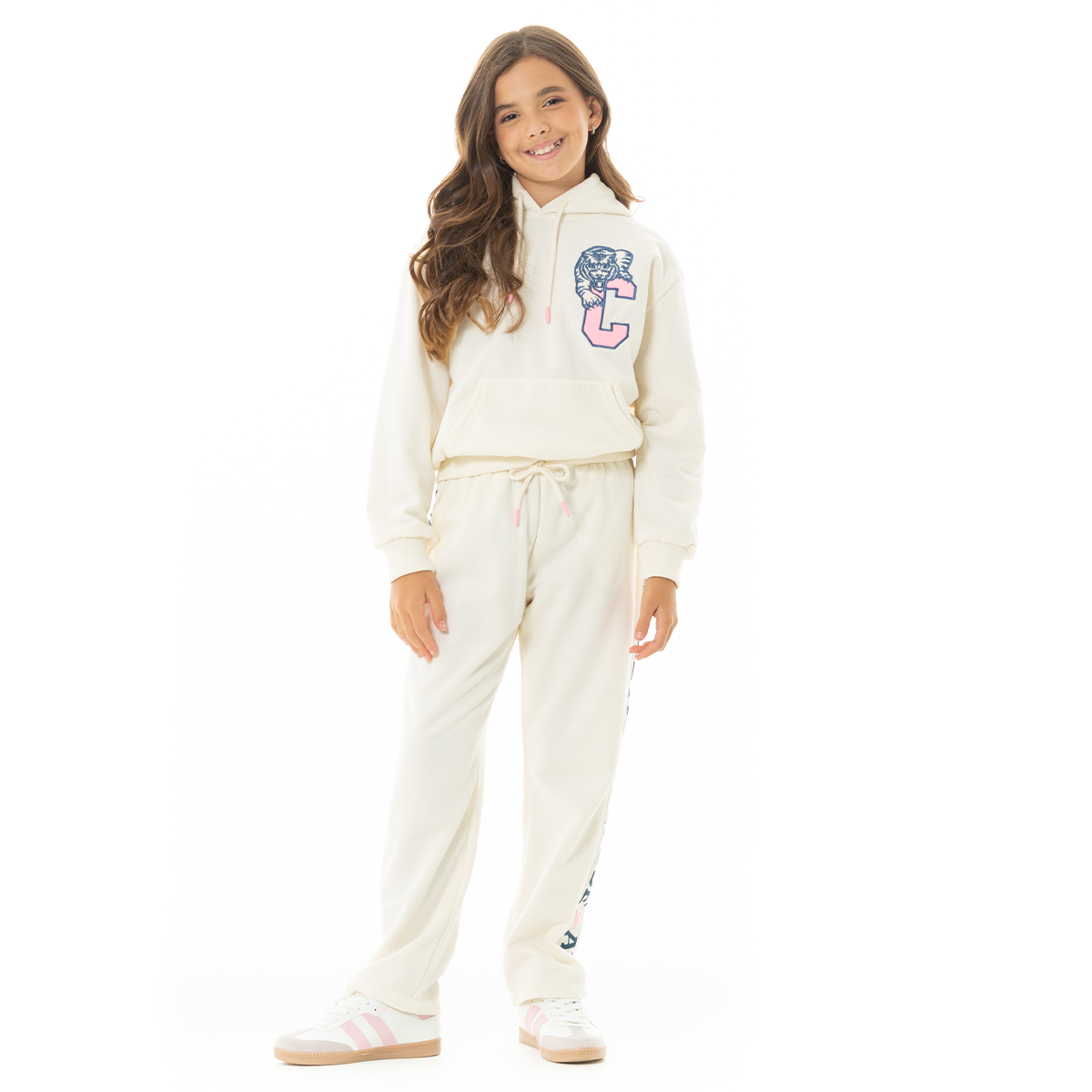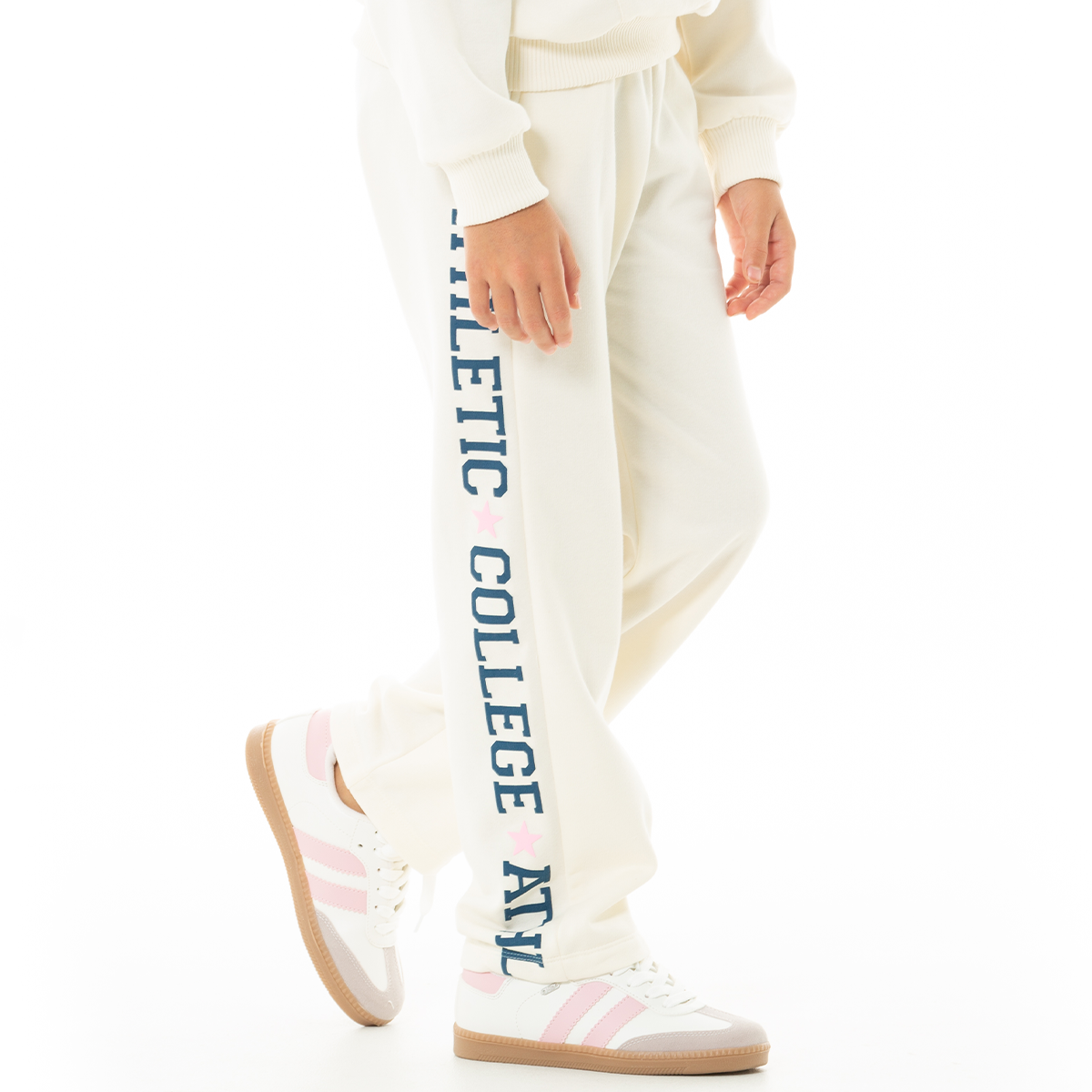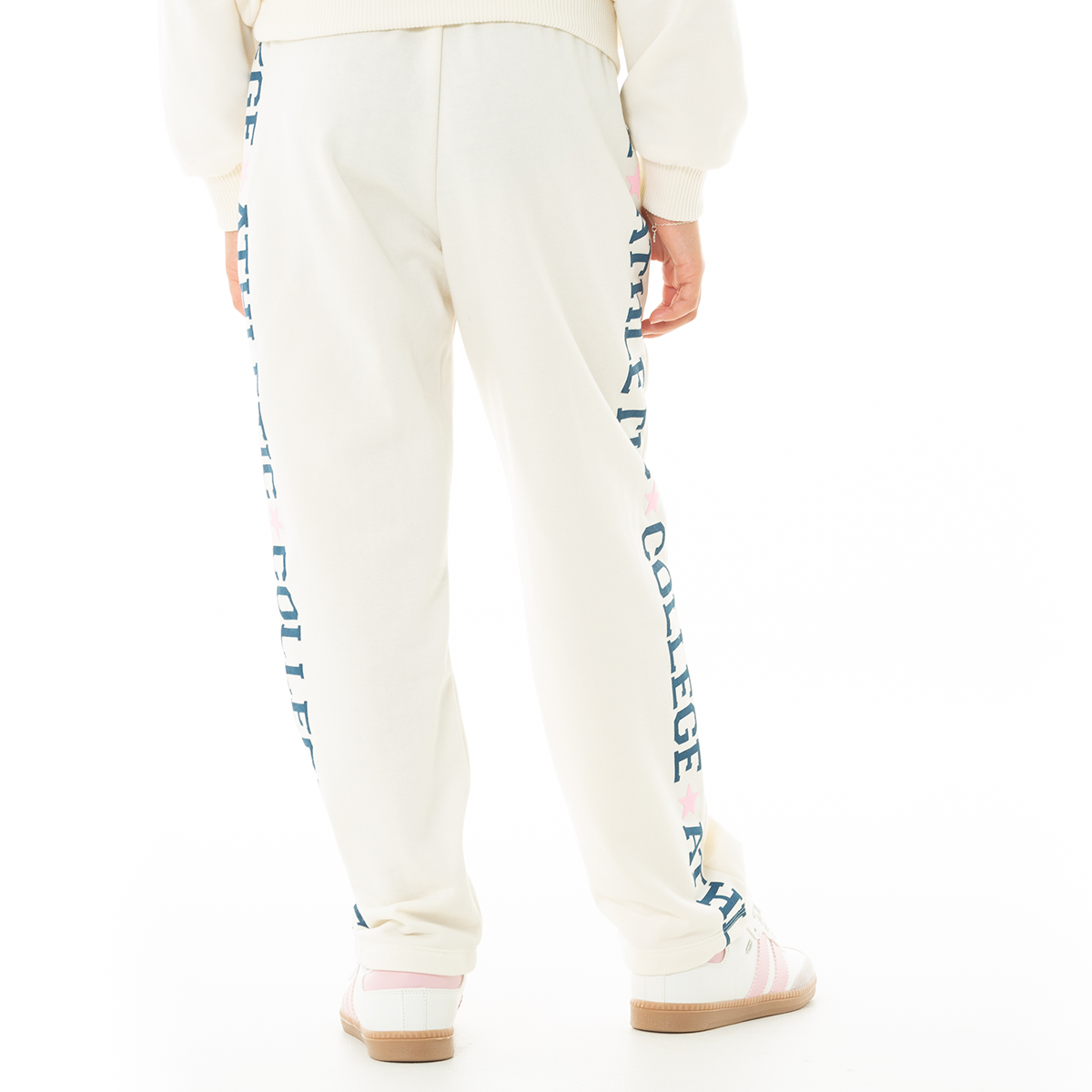 Esta sudadera es la combinación perfecta entre comodidad y estilo, El detalle que la hace especial es su estampado lateral en letras grandes de estilo universitario “ATHLETIC COLLEGE”, acompañado de pequeñas estrellas en tono rosa pastel que le dan un toque divertido y femenino. ¡Perfecta para combinar! ¡Será tu preferida!