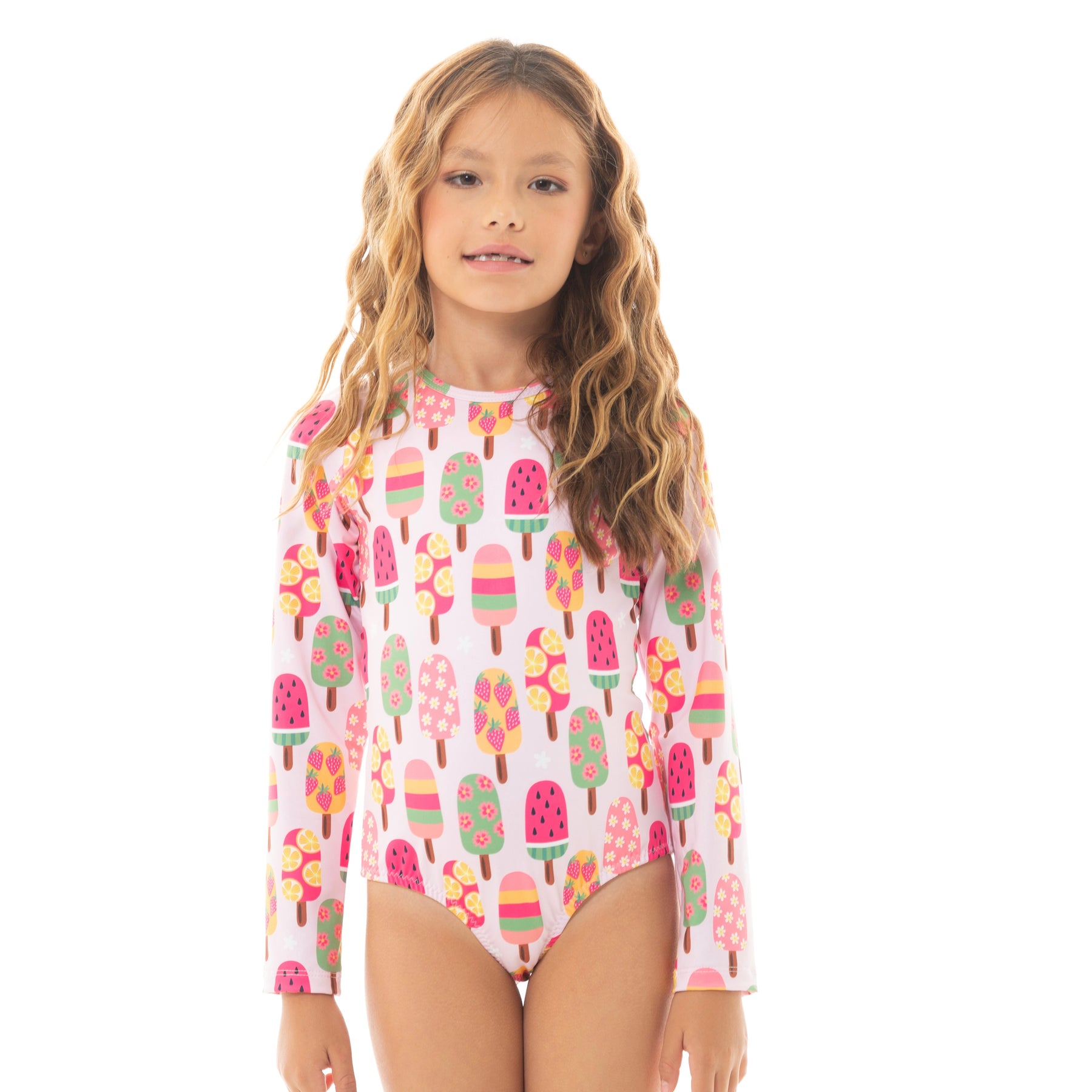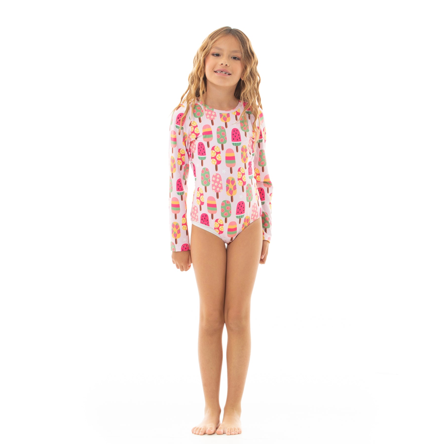 ¡Diversión, color y protección en una sola prenda! 🍭Este adorable traje de baño de manga larga destaca por su vibrante estampado de paletas heladas en tonos rosados, verdes y amarillos. Diseñado para brindar comodidad y estilo, su diseño de manga larga ayuda a proteger la piel de los rayos del sol mientras las niñas disfrutan del agua ¡Acompaña tus días soleados con nuestros estampados! ¡Lúcete con Nauty Blue!