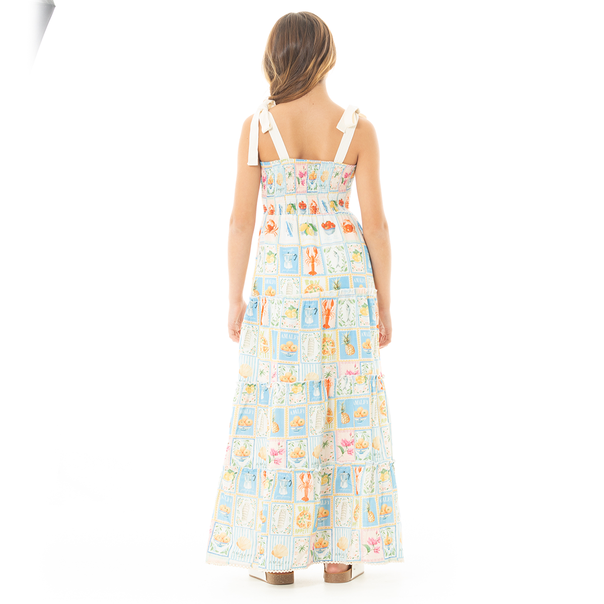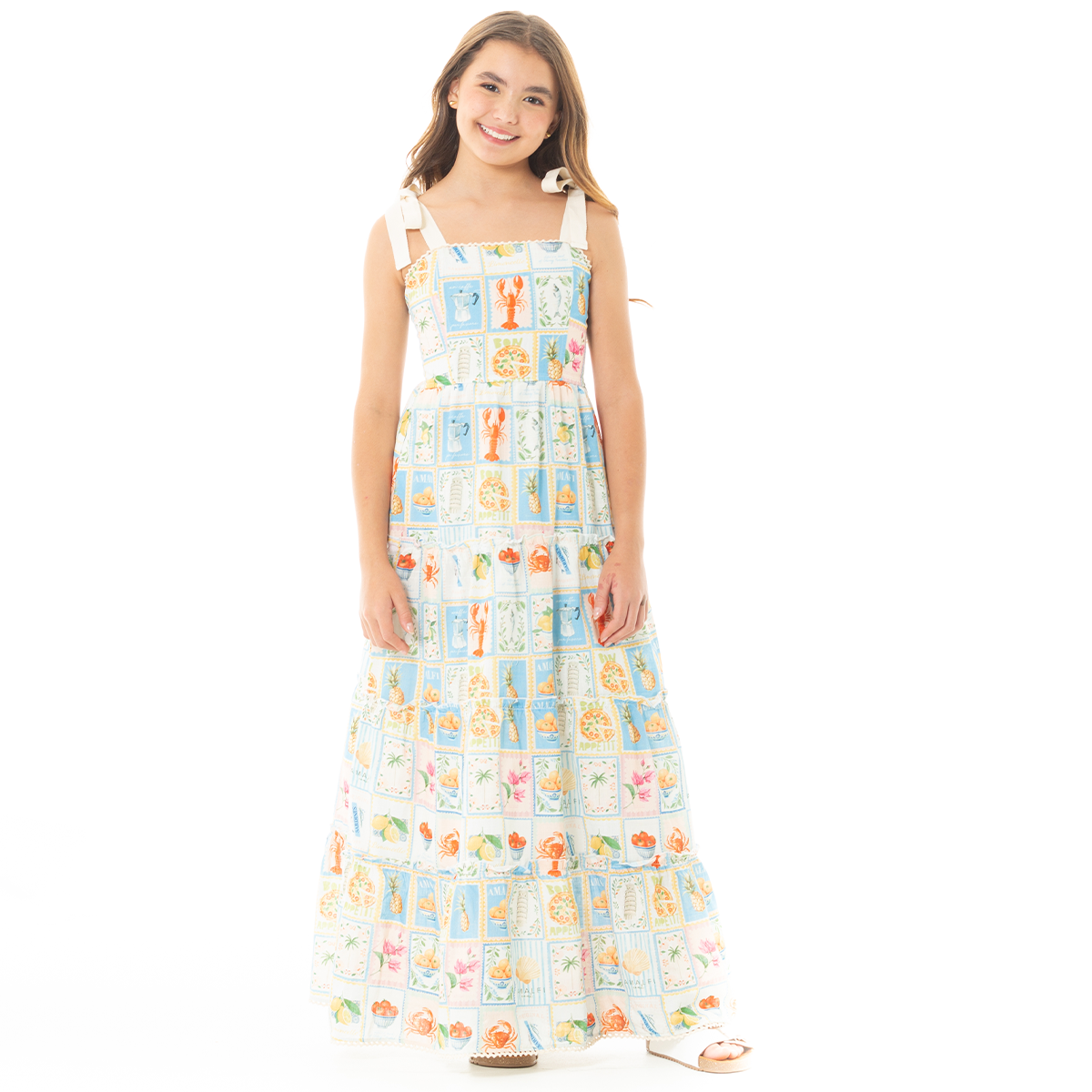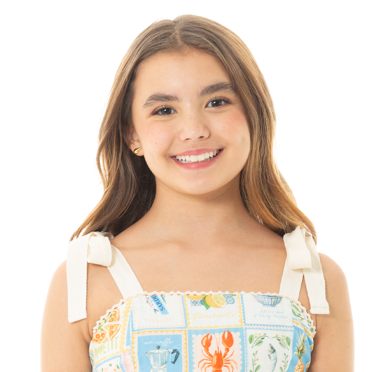 Este encantador vestido para niña combina frescura, color y un diseño lleno de alegría🌸. Con un estampado inspirado en motivos veraniegos como frutas, flores, mariscos y elementos tropicales cada detalle aporta un toque divertido y dulce que lo convierte en el favorito. Con tirantes anchos con delicados lazos, añadiendo un acabado femenino y cómodo ¡Luce hermosa con este outfit!
