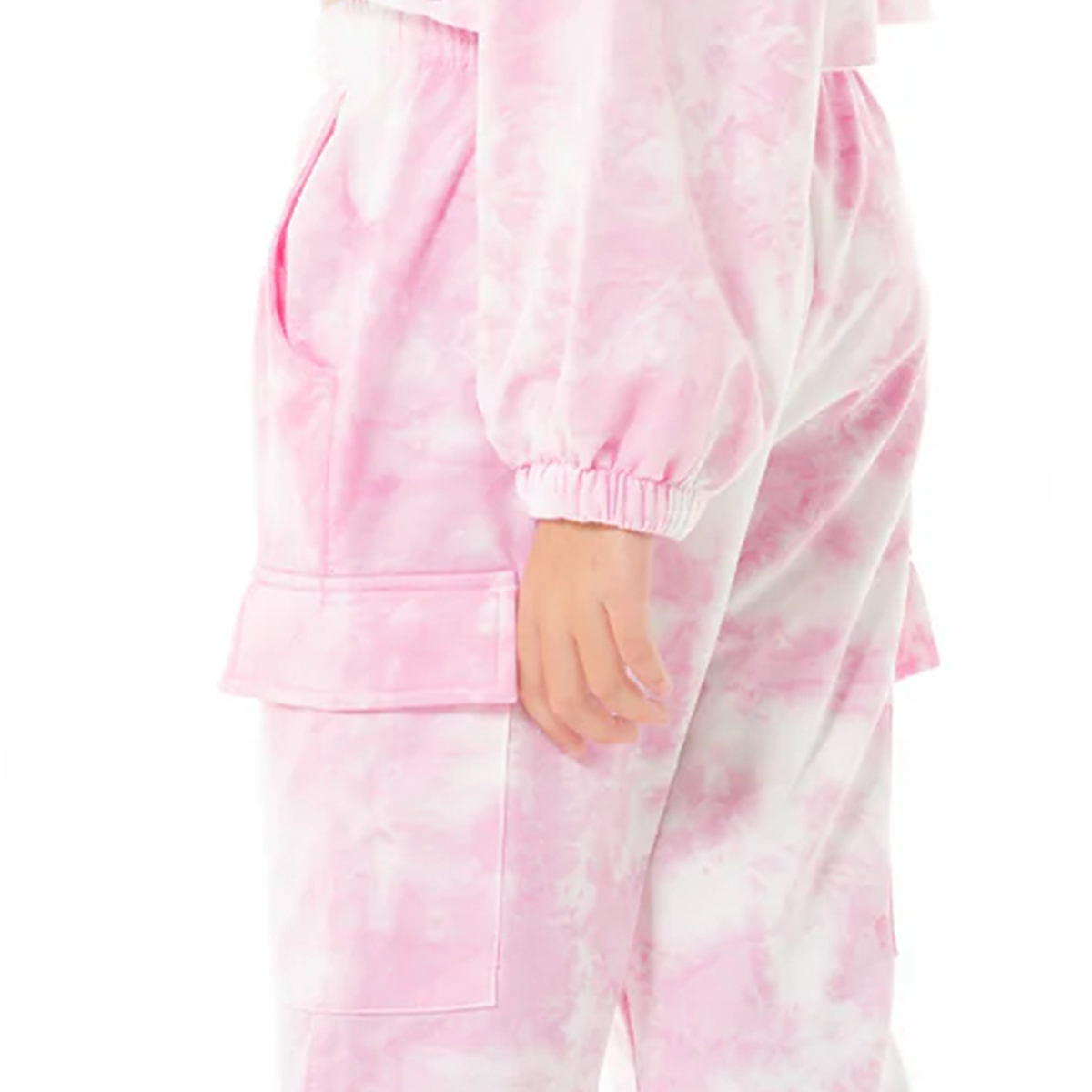 Sudadera para niñas de color rosado tie dye, jogger en textura suave ¡Siéntete linda con este look! ¡Ideal para estar linda y cómoda!