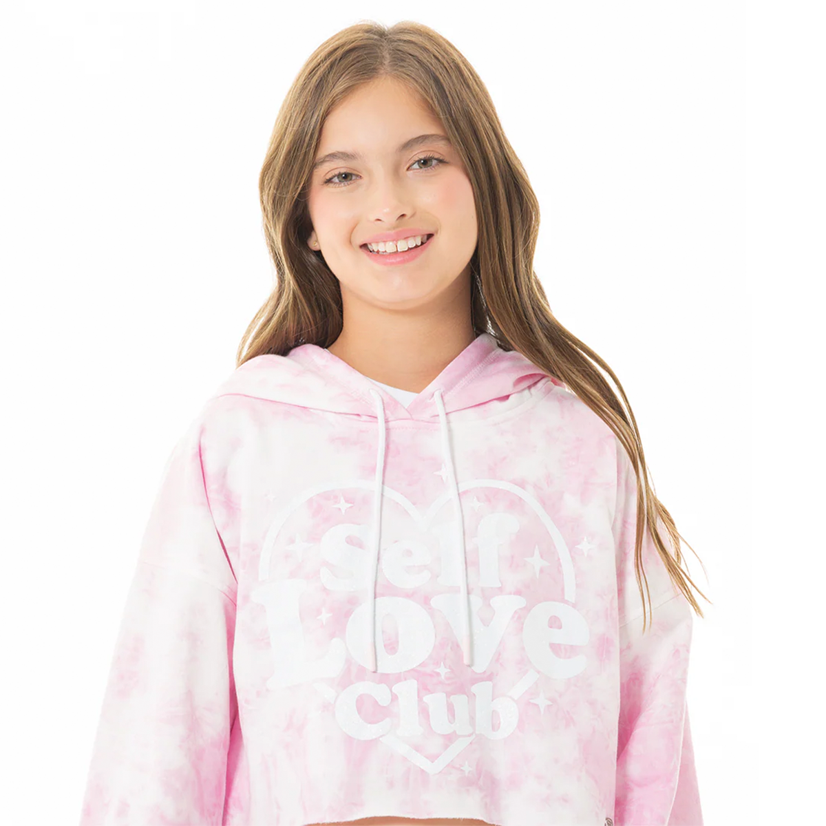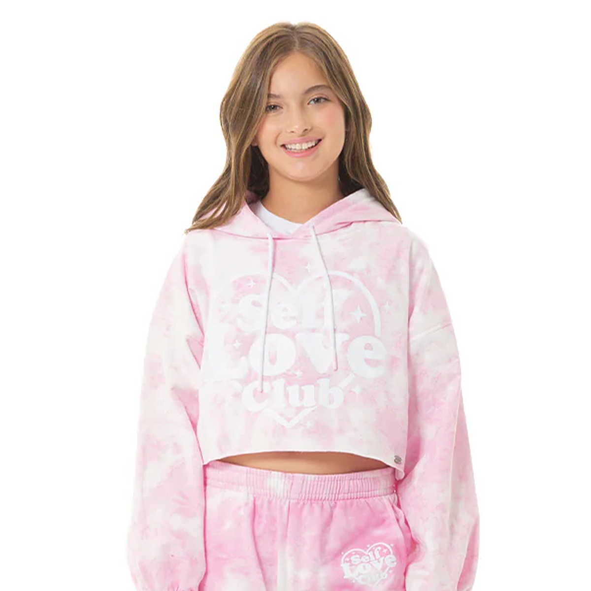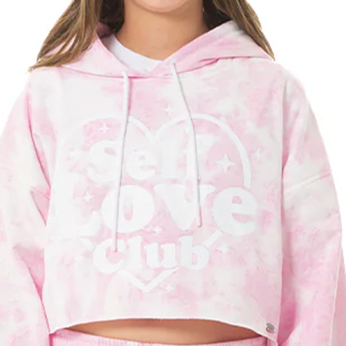 Este hoodie tipo crop con capucha es ideal para crear looks relajados y con mucho estilo, el diseño en blanco con degradado rosa pastel aporta frescura generando un encanto único. !Lucete con Nauty Blue!