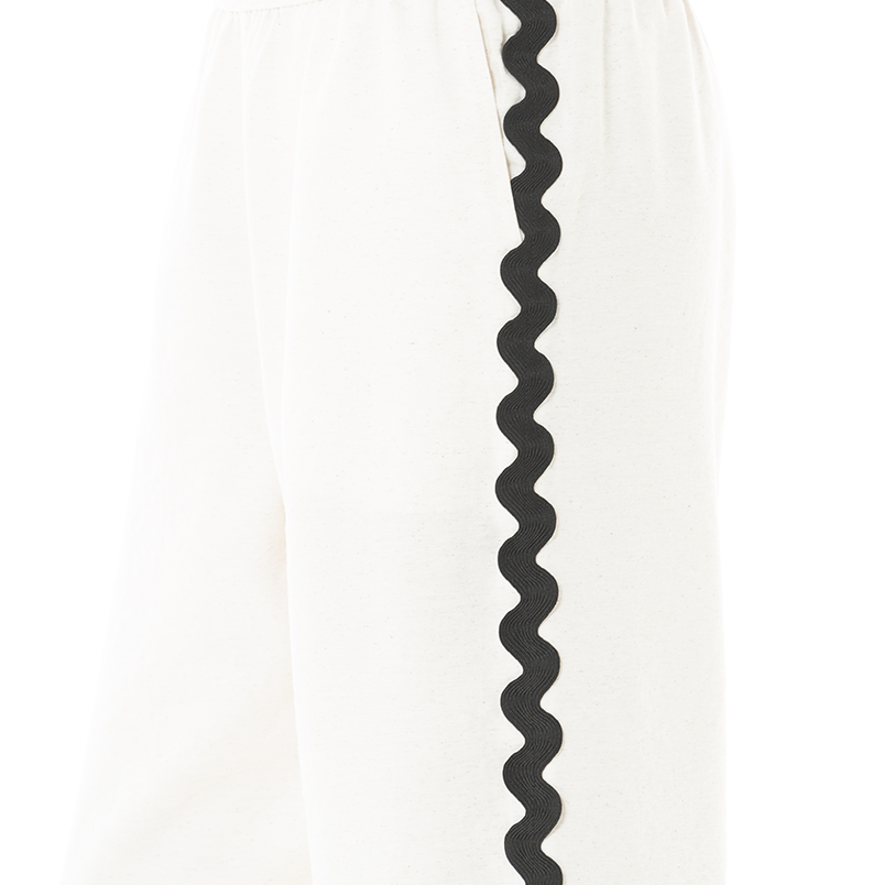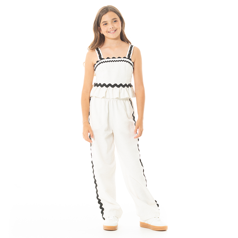 Este pantalón para niñas ofrece una armoniosa fusión de comodidad y elegancia 💗. Elaborado con un tejido delicado y ligero, su diseño se realza con un sofisticado aplique lateral en ondas negras que aporta un aire distintivo y contemporáneo. Ideal para diversas ocasiones, refleja estilo en cada detalle ¡Perfecto para cualquier ocación!