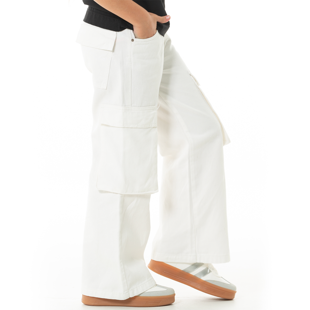 Jean cargo con tiro alto para niñas, ideal para llevar cualquier día de la semana, fácil de combinar. Su diseño con bolsillos laterales y estilo ancho es perfecto para hacerte sentir, cómoda y hermosa. ¡El jean perfecto para combinar con nuestras camisetas! ¡Será tu preferido!