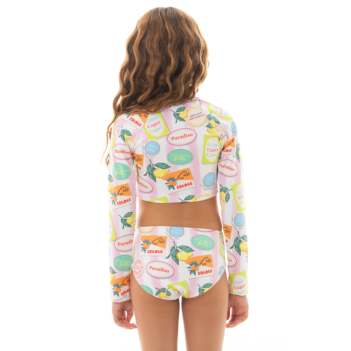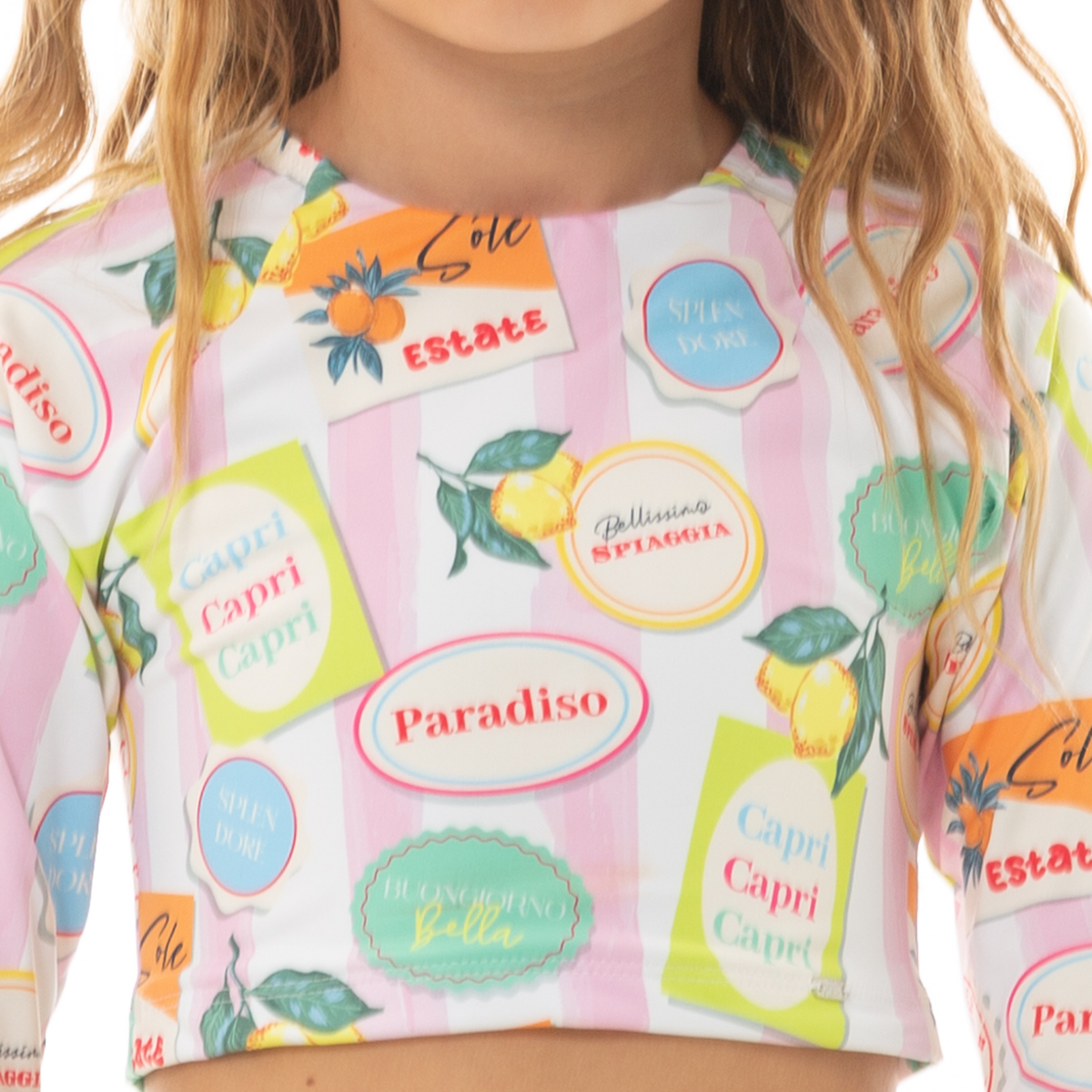 Este vestido de baño de dos piezas diseñado en un diseño tropical es ideal para quienes buscan comodidad, estilo y un toque original en la playa o la alberca. La parte superior de manga larga es perfecta para proteger tu piel del sol sin perder el estilo, mientras que la parte inferior ofrece un ajuste cómodo y seguro. ¡Lúcete con Nauty Blue!