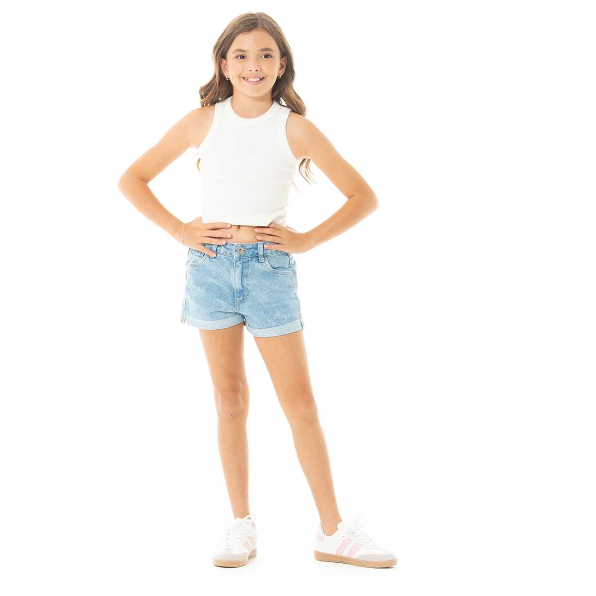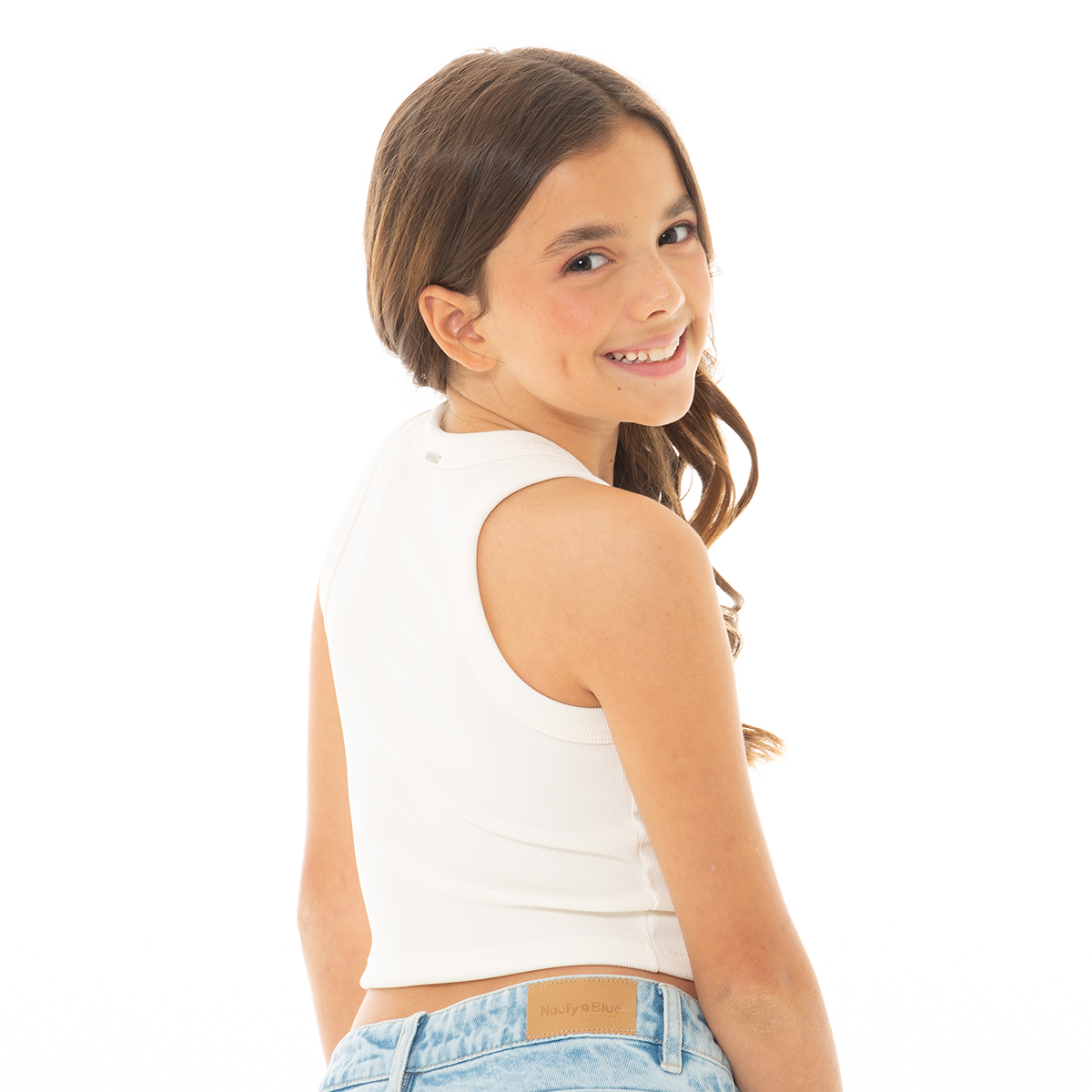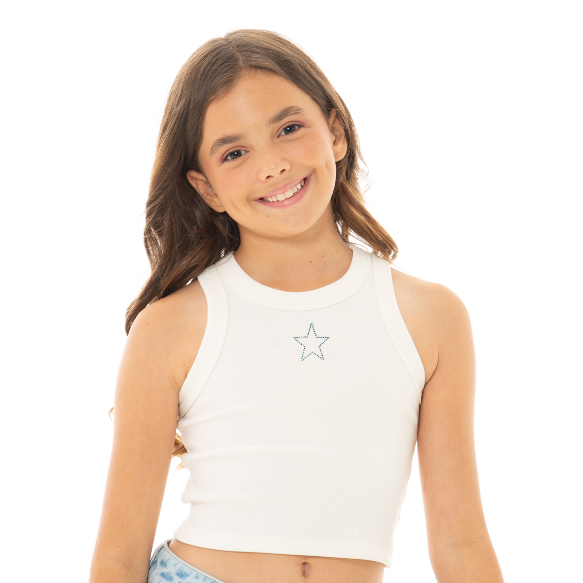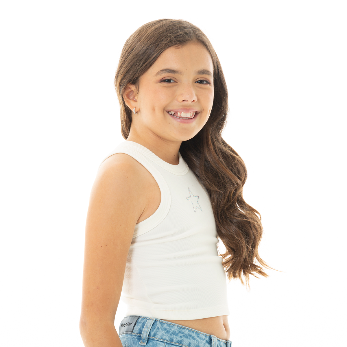 Este crop top es una prenda esencial con un toque distintivo. Su diseño limpio y moderno se realza con una estrella delicadamente bordada en el centro del pecho, añadiendo un detalle sutil pero con personalidad.. ¡Un básico con un toque de brillo que no puede faltar!