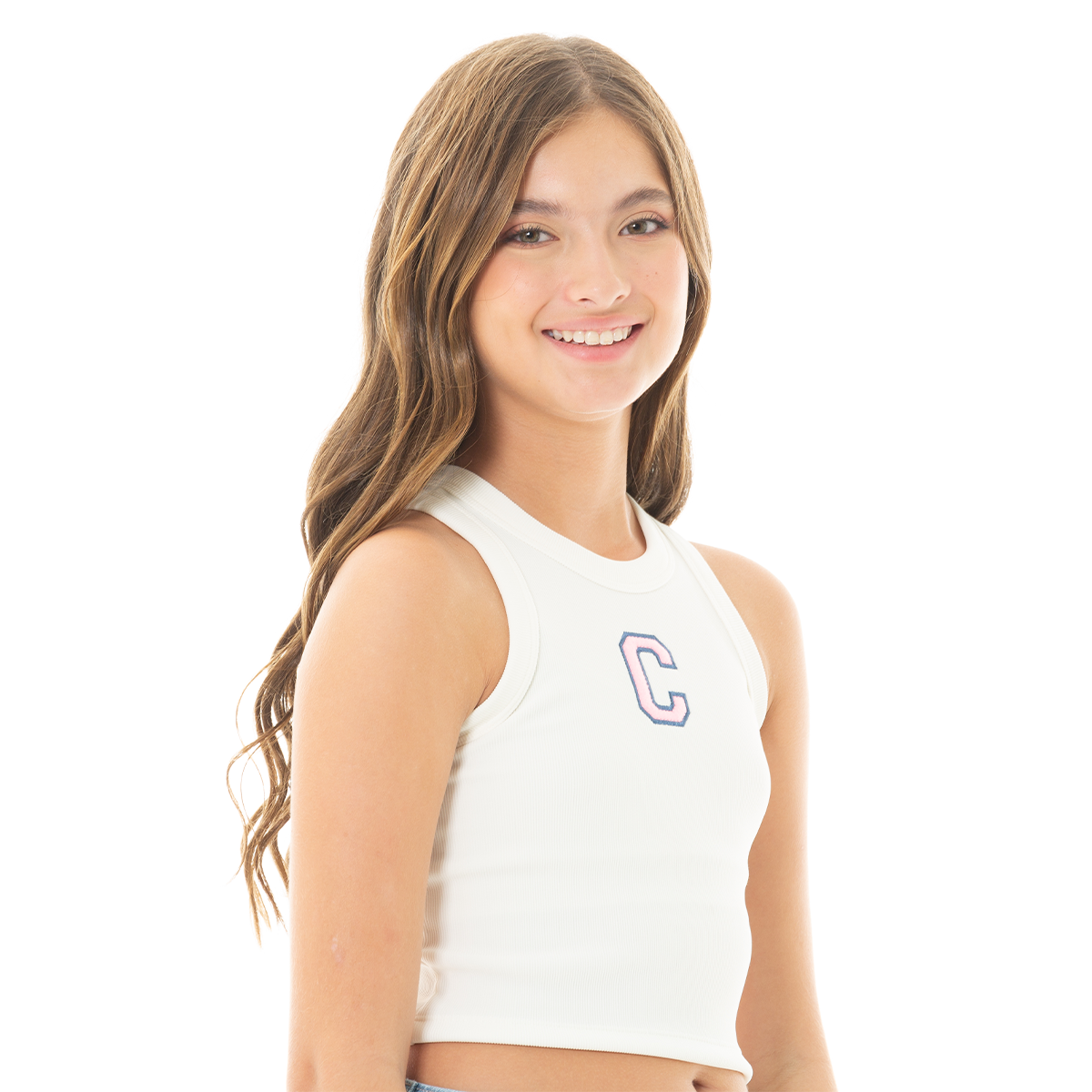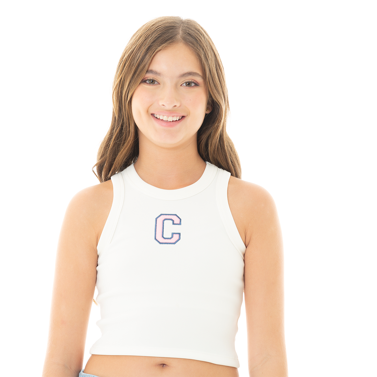 Este crop top representa el perfecto estilo, diseñado con un corte ajustado que realza la silueta, presenta un acabado minimalista con un distintivo bordado de la letra "C" en el pecho, en tonos azul marino y rosa pastel. ¡Un Básico infaltable para tus outfits Nauty Blue!