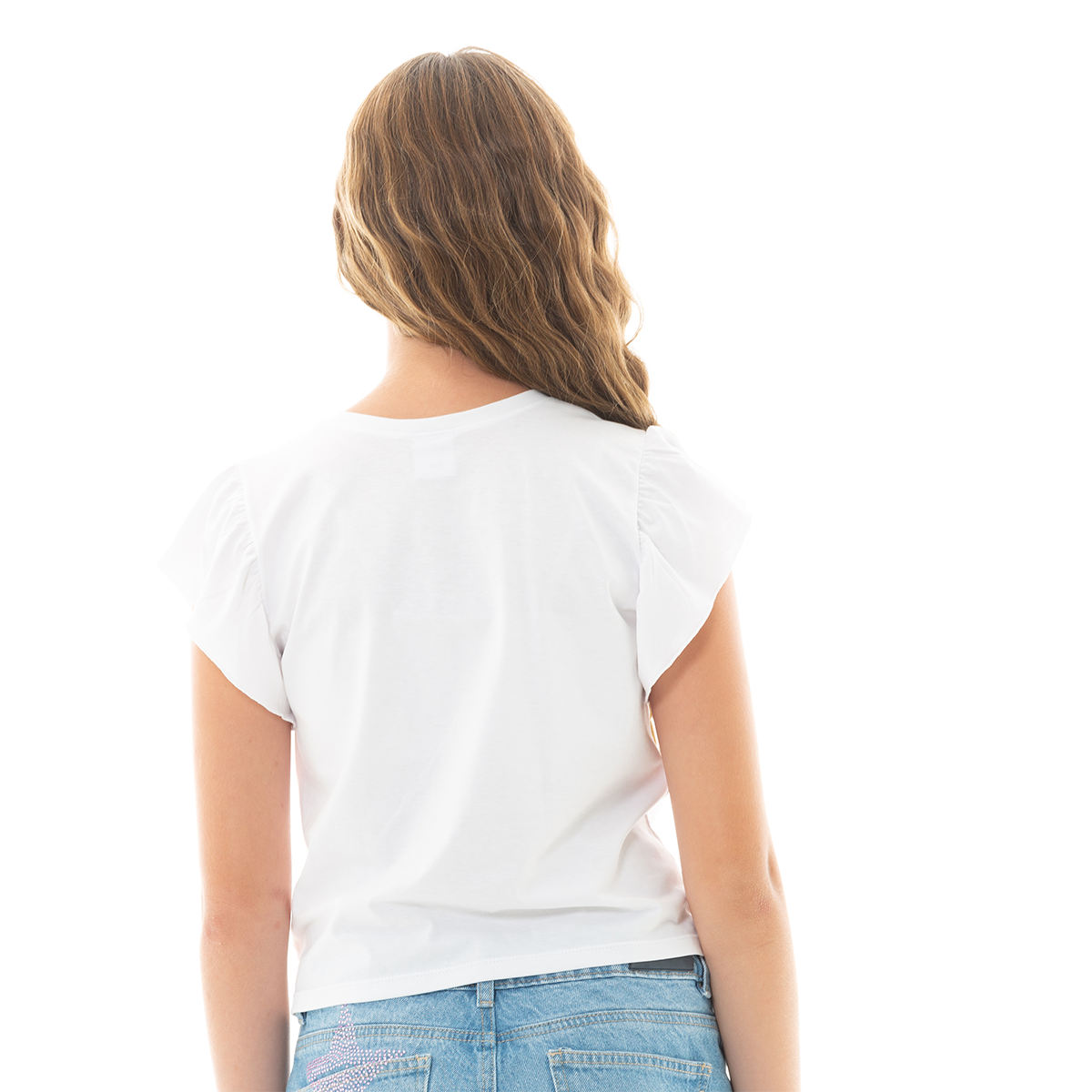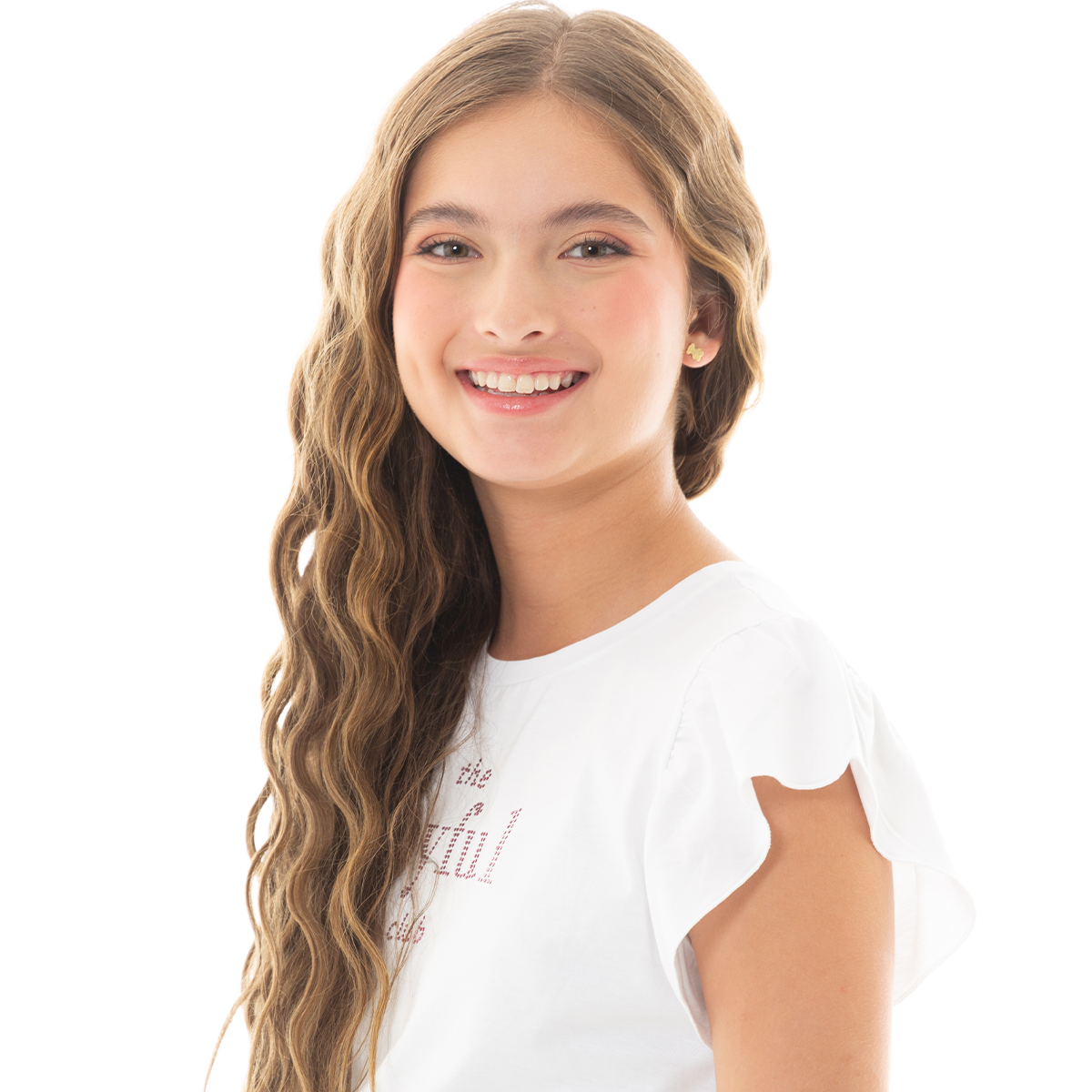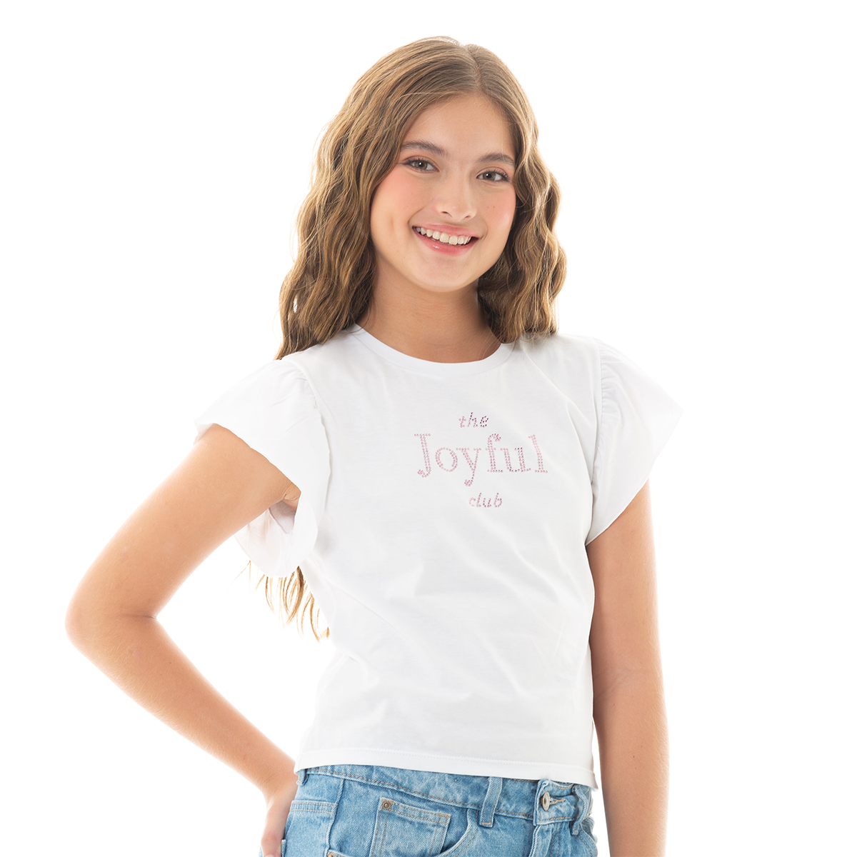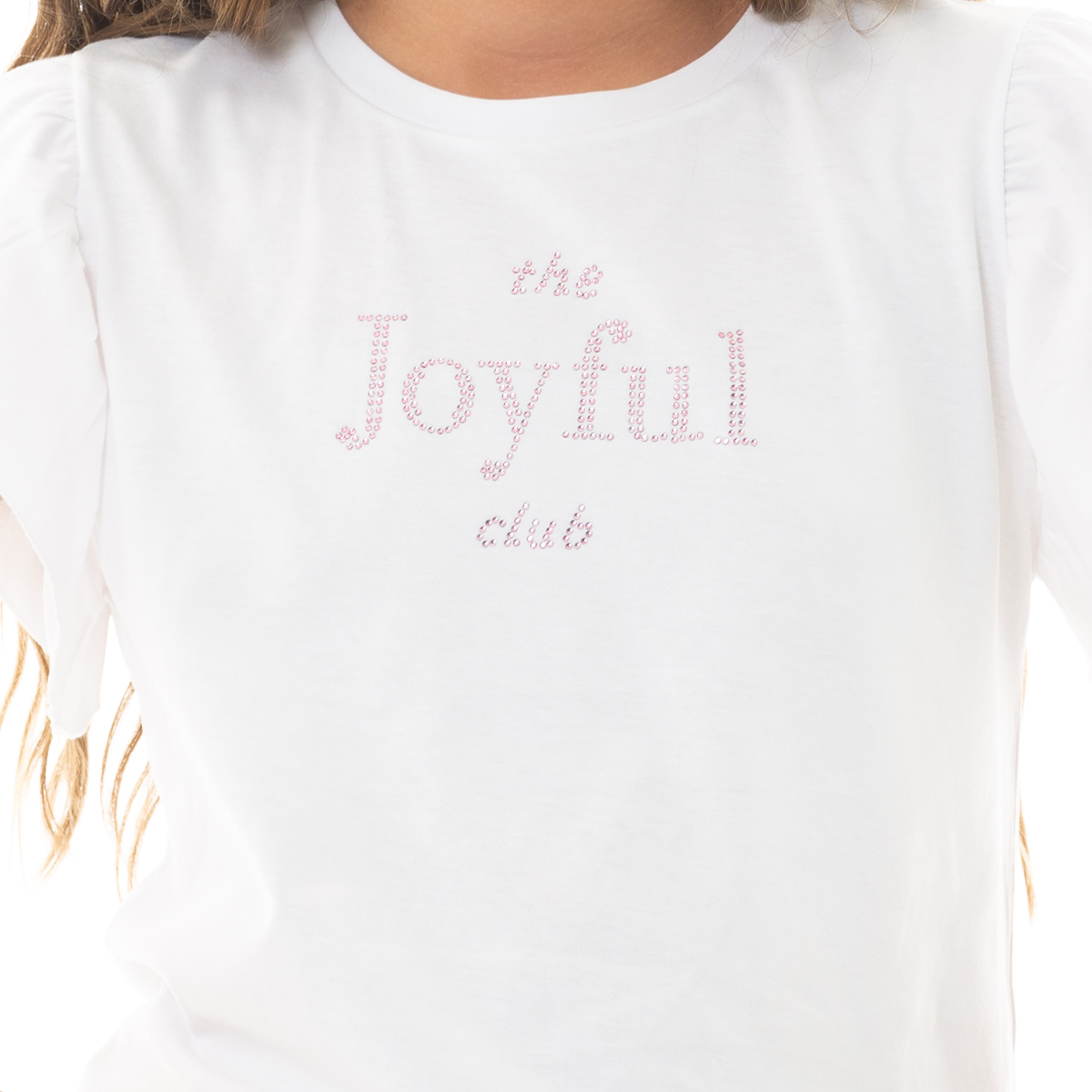 Camiseta blanca para niña con mensaje “The joy ful club”