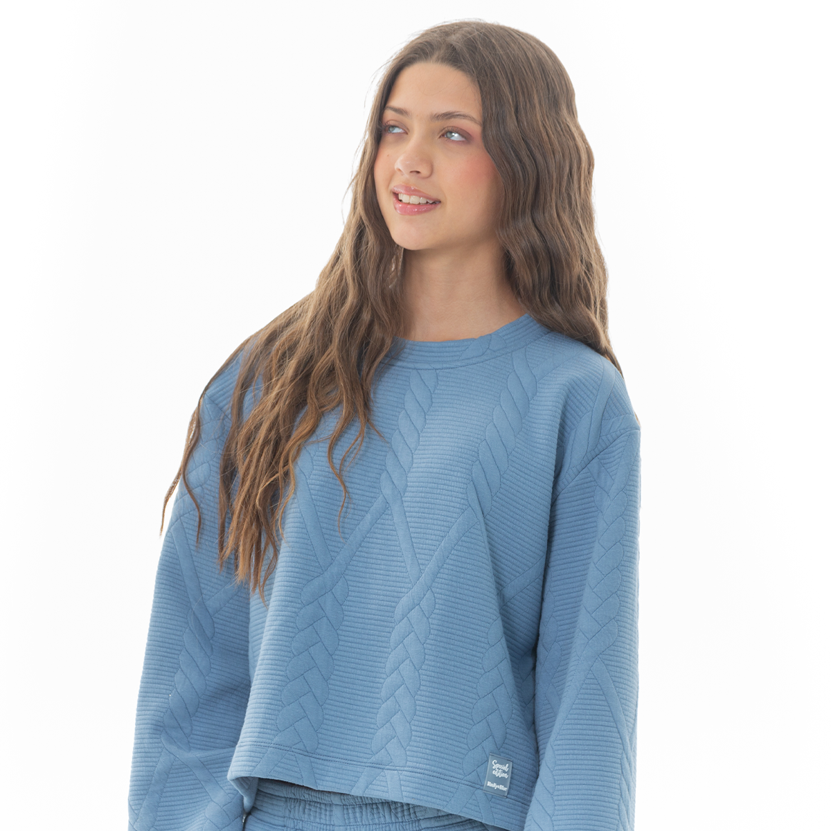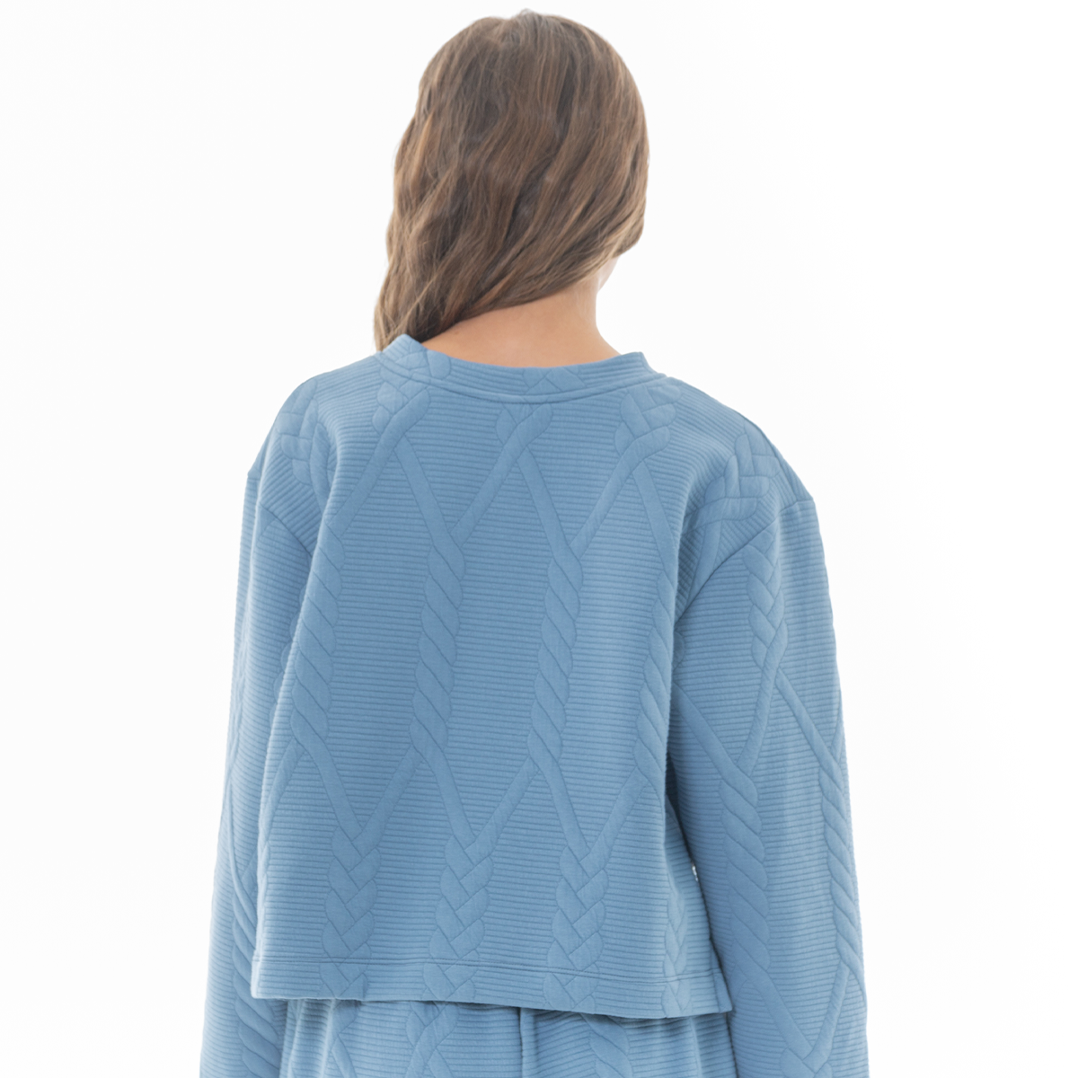 Este Hoodie para niña es ideal para crear looks cómodos, modernos y llenos de estilo💙. Su diseño destaca por su textura en relieve tipo trenzado que le aporta un toque especial y diferente, perfecto para el uso diario. Confeccionado en una tela suave y ligera que brinda calidez sin perder comodidad permitiendo libertad de movimiento durante todo el día. Su ajuste relajado y cuello redondo lo convierten en una prenda versátil fácil de combinar ¡Luce siempre hermosa con Nauty Blue!