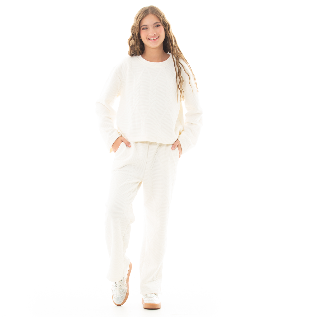 Esta sudadera para niñas es la prenda ideal para brindar confort, suavidad y libertad de movimiento🤍. Su diseño con textura tipo trenzado aporta un acabado delicado y sofisticado elevando la prenda sin perder su esencia infantil. Incorpora pretina elástica, que garantiza un ajuste seguro y cómodo, facilitando la postura y el movimiento natural de las niñas ¡Ideal para crear looks modernos y femeninos! ¡Será tu preferida!