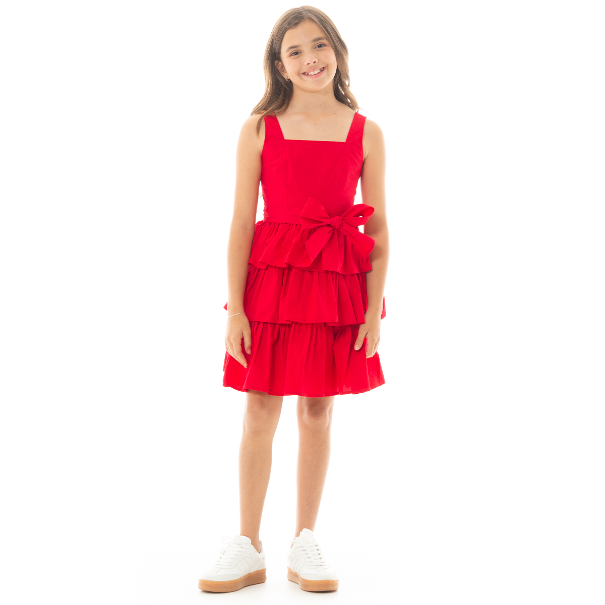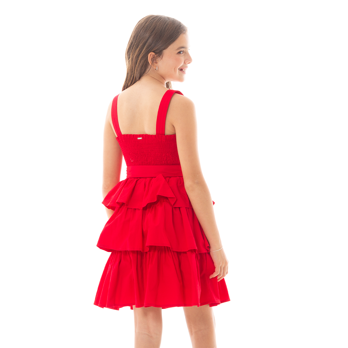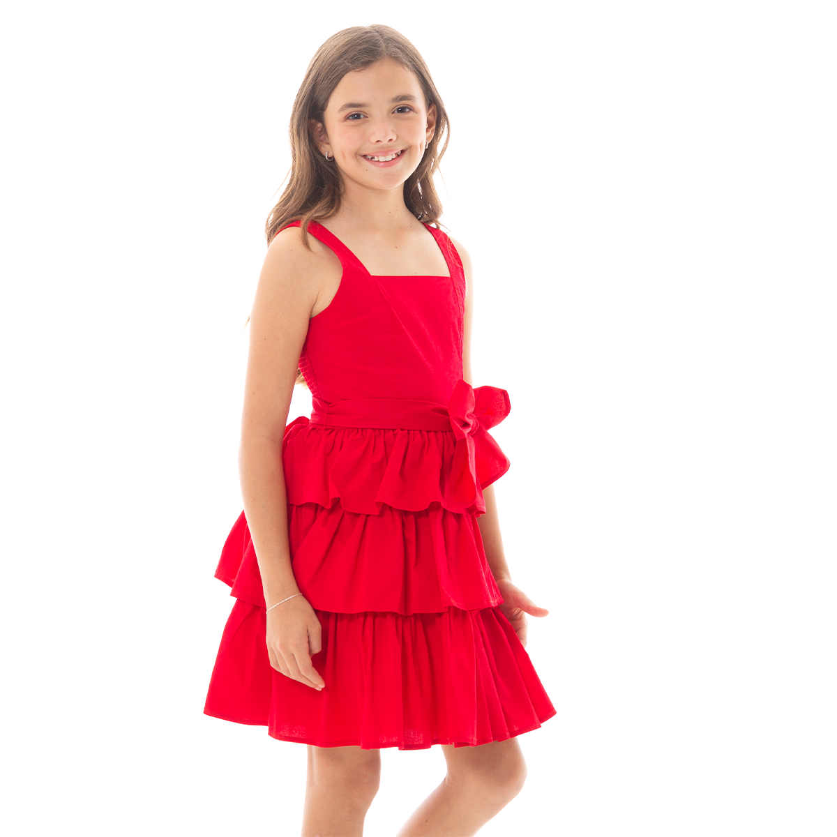 Un vestido encantador que combina elegancia y frescura para ocasiones especiales. Su diseño en color rojo vibrante resalta la alegría y el estilo, mientras que sus volantes en capas aportan movimiento y un aire divertido. ¡Diseños cómodos y frescos para todas las ocasiones!